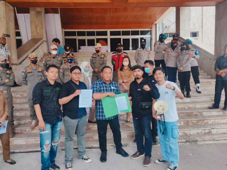 Usai menggelar aksi di Kantor Gubernur Sumsel, massa Koalisi Kawal Lingkungan Hidup Lestari (Kawali) Sumsel melanjutkan aksinya di Gedung DPRD Sumsel, Senin (29/8).