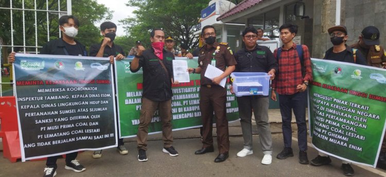 Sejumlah aktivis yang tergabung dalam Kawal Lingkungan Hidup Indonesia (KAWALI) Sumsel, Senin (5/9), mendatangi Kantor Kejaksaan Tinggi (Kejati) Sumsel. Kedatangan mereka guna menyampaikan pernyataan sikap dan menyerahkan hasil temuan terbaru mereka serta membuat Laporan dan Pengaduan (Lapdu) dugaan mega skandal korupsi yang dilakukan sindikasi antara perusahaan PT Musi Prima Coal, PT Lematang Coal Lestari dan PT GHEMMI.